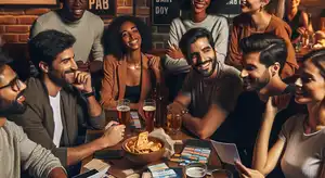これはバーやパブで定期的に開催されるクイズイベントで、チームに分かれて雑学問題に挑戦します。