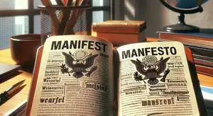Manifestoは、組織や政党の信念・目標・政策を記した公式文書を指します。